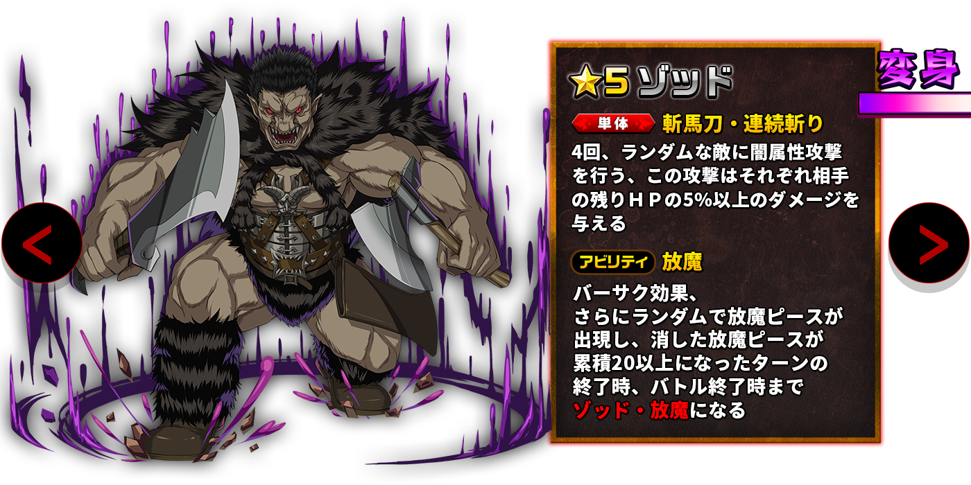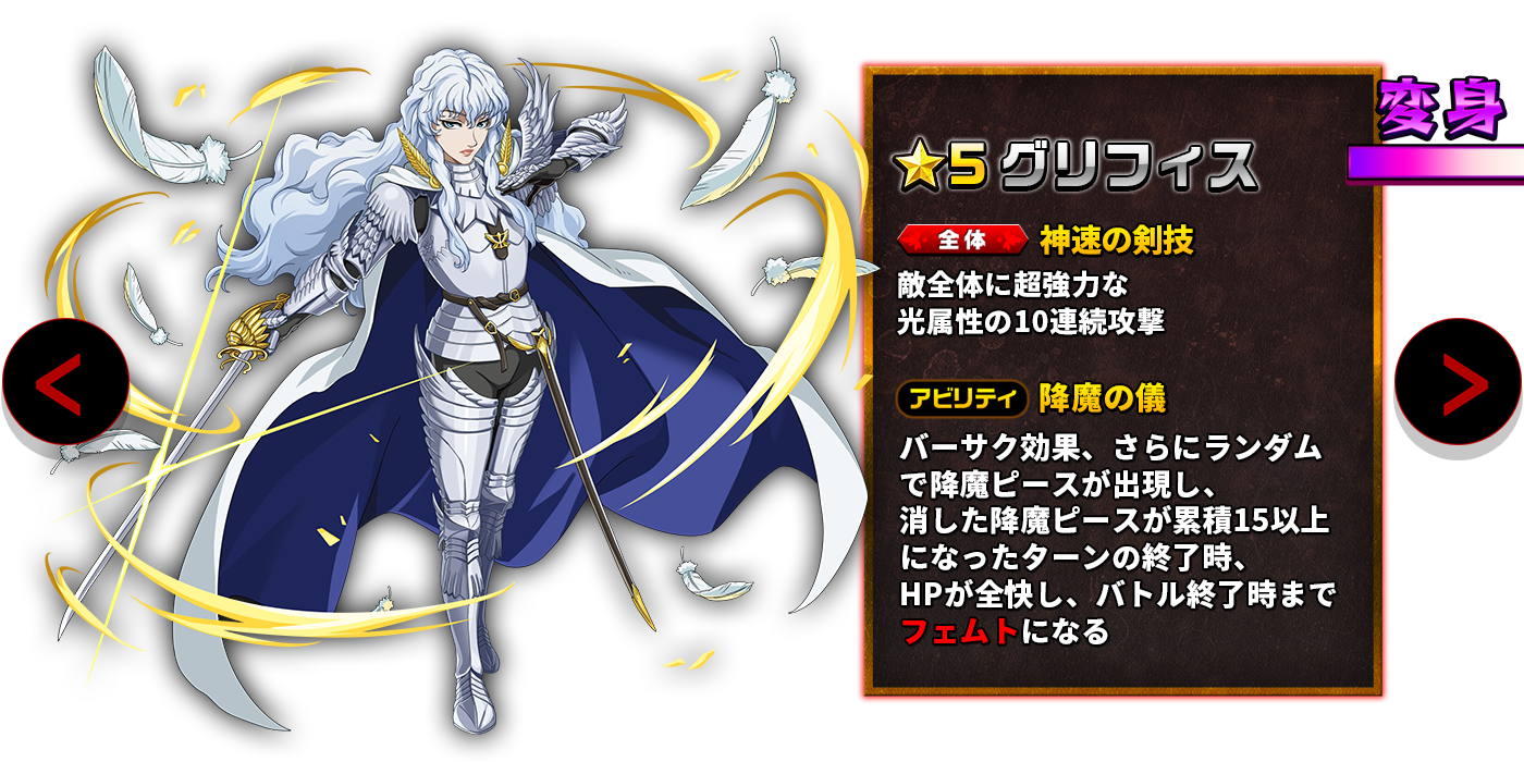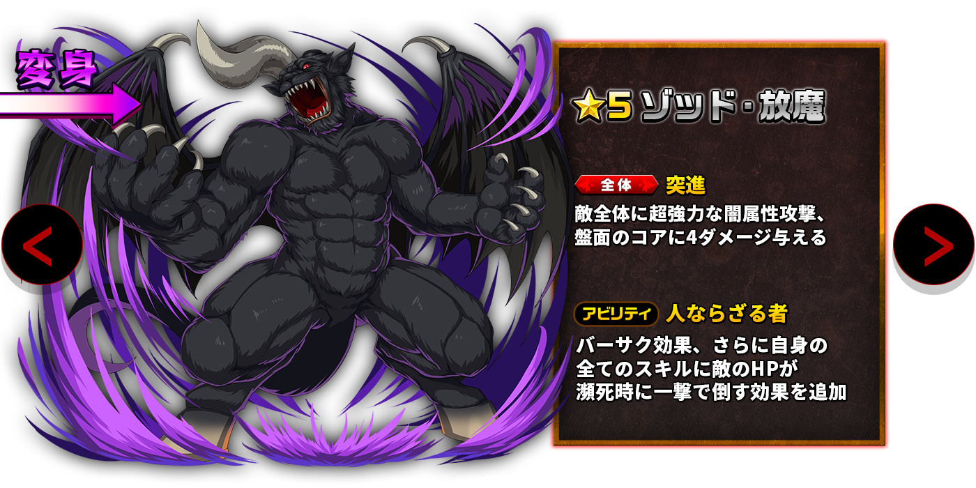 バトル中、特別なピースを一定数消すことで姿が変わる特別なキャラクターが登場!