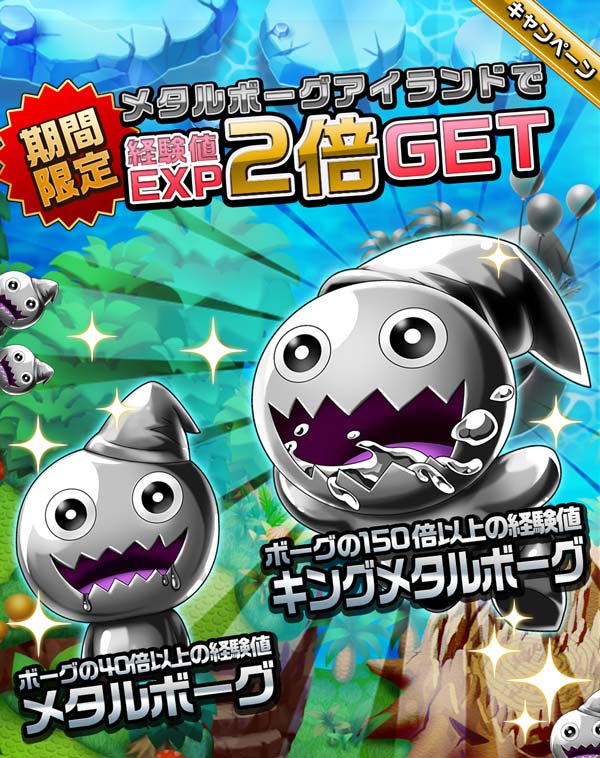期間中、メタルボーグアイランドで手に入るモンスターのEXP(経験値)がなんと2倍になります