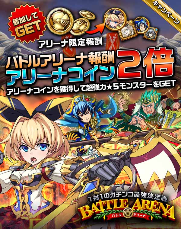 バトルアリーナにて『勝敗報酬の獲得アリーナコイン2倍』キャンペーンを開催いたします