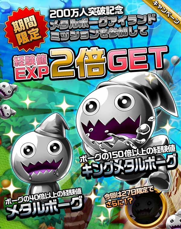 期間中、メタルボーグアイランドで手に入るモンスターのEXP(経験値)がなんと2倍になります