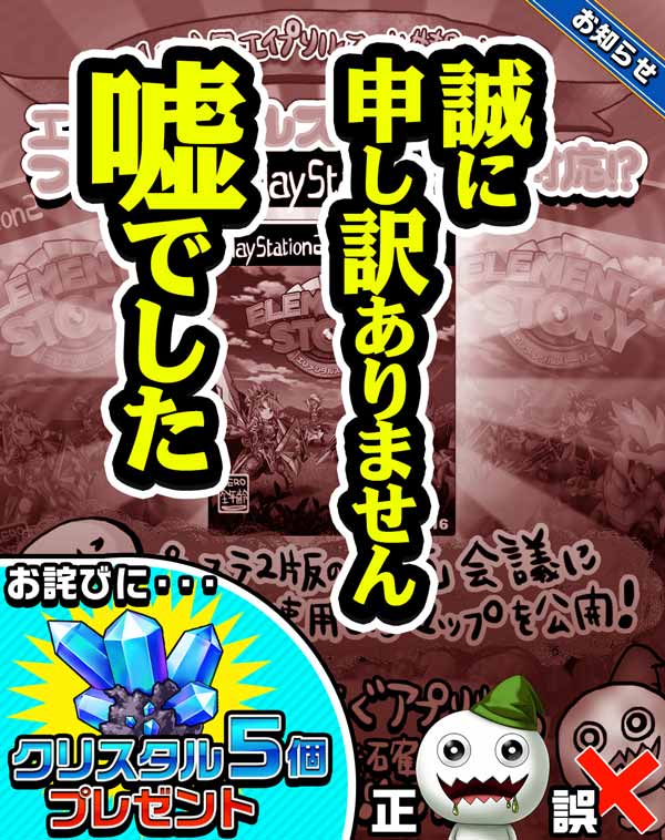 4/1 00:00に告知いたしました「エレメンタルストーリー」が「プレイステーション2」に対応する件につきまして、