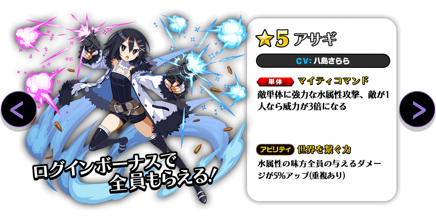 ログインボーナスで「★5アサギ」もらえる!