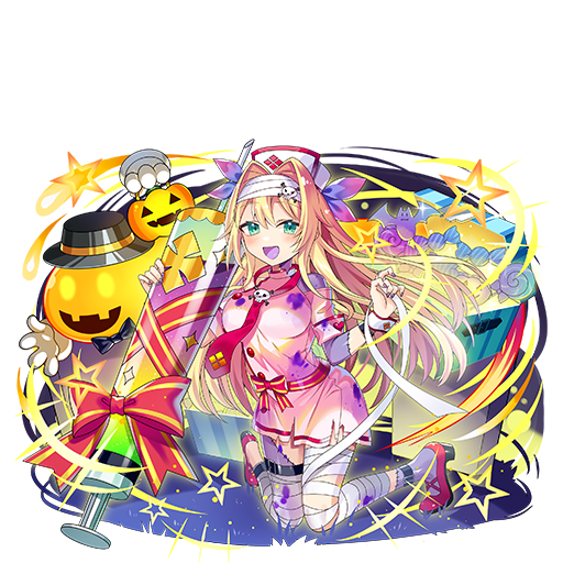 バトル開始時、光属性の味方全員に(スキル発動時、盤面の光ピース数が多いほど自身のスキル攻撃力が増加する)効果を付与する、ターン終了時、「味方全員のHPを回復、味方にかかっている蓄積毒、火傷、不利な補助効果を解除」スキルを発動する