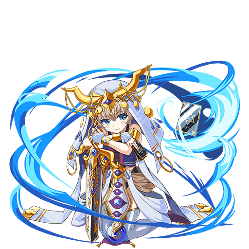 自身の会心率が100%アップ、消した水ピースが30個以上ならスキル威力6倍、クエスト時、水属性・ビースト・スピリット・ゴッドの味方全員の攻撃にかかるダメージ上限を20億引き上げる
