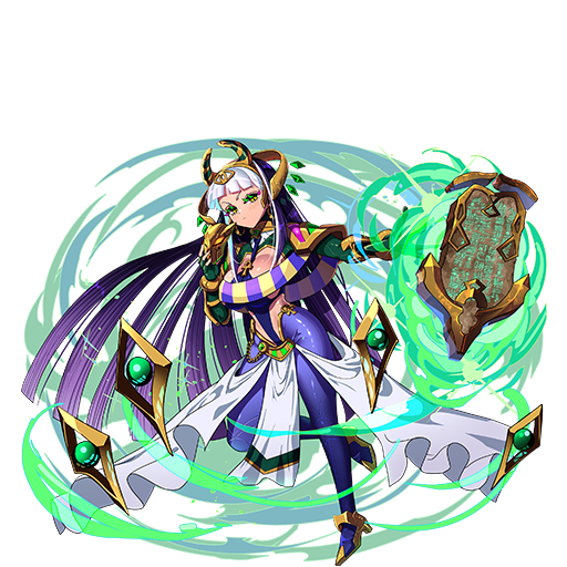 ピース操作前、水ピース3つを木ピースに変化、アリーナ時、敵出現時とダメージを受けた時とターン終了時に「ヒエロスシンボル」を発動する、このアビリティは敵に変更されない
