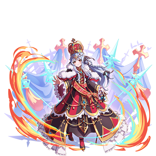 - このターンの間、火属性の味方全員の会心率・会心ダメージが50%アップ、ピース操作終了後、このターンの間、火属性の味方全員に「コンボ数に応じて自身のスキル攻撃力が上昇(アリーナ時は効果減少)」を付与する