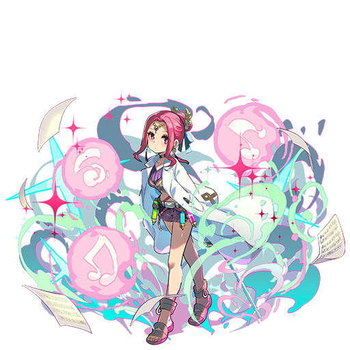 スキル形状を揃えたスキルをすべて発動できる、敵出現時、スキル1を発動する、コンボ数に応じて自身のスキル攻撃力がかなり大きく上昇(アリーナ時は効果減少)