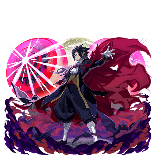 味方4体全員が闇属性なら、自身のHPと攻撃力が1000上昇、武器を2本まで装備可能(武器装備条件を無視)、スキル3を揃えた時でも、装備しているチャージ済みの武器スキルが発動する