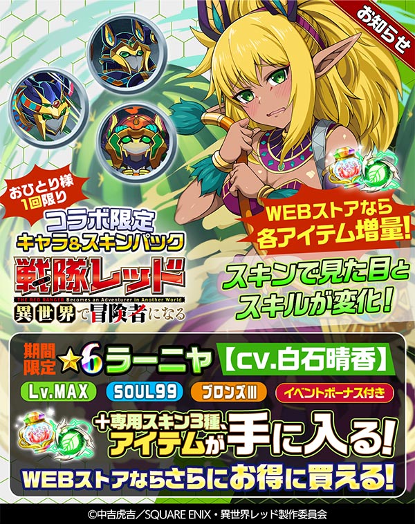※キャラクター「★6 ラーニヤ」やおまけの召喚券の詳細に関しては、アプリ内のお知らせも併せてご確認ください