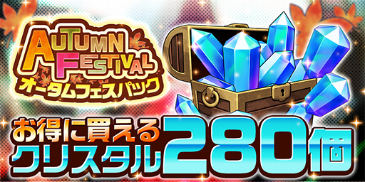 アプリ内の「オータムフェスクリスタルパック」と同様のパックになり、WEBストアではアプリ内よりもクリスタルが10%増量されておりお得に購入することができます br>