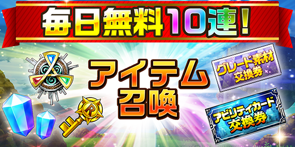 | ・アイテム召喚券x10 | 無料 | 毎日1回まで |